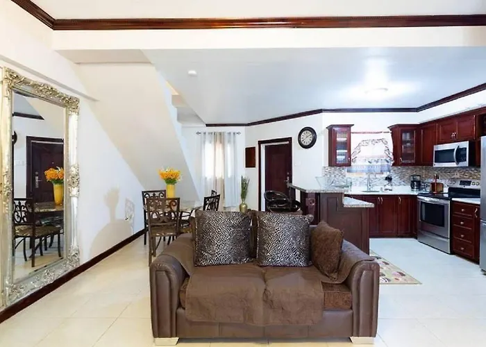 The welcoming 75 m² Loft - Sleeps 4 - Parking - Balcony Apartment Kingston is located nearly 25 minutes' walk from the Bob Marley Museum and offers Wi-Fi for either business or leisure. The 2-bedroom apartment lies in the New Kingston district, 2.6 km from Bamboo Avenue.